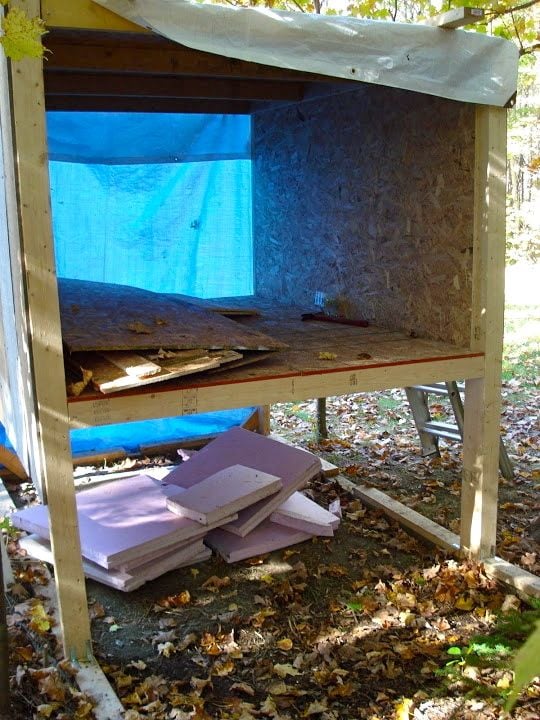 We put plastic around the bottom of the coop in the winter. So the chickens have somewhere snow and wind free in the winter.